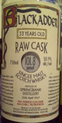 | Rodzaj whisky: | | bez dodatku karmelu, cask strength, limited edition, single cask, unchillfiltered, dest. 25.IV.1967, but. IX.2000, 220 butelek w serii na rynek amerykański |
