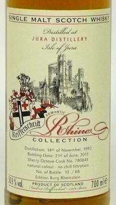 | Rodzaj whisky: | | bez dodatku karmelu, cask strength, limited edition, single cask, unchillfiltered, dest. 14.XI.1992, but. 21.VI.2011, octave cask, 68 butelek w serii |