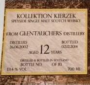 | Rodzaj whisky: | | bez dodatku karmelu, cask strength, limited edition, single cask, unchillfiltered, dest. 26.VI.2002, but. 2.XII.2014, 83 butelki w serii |