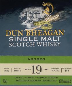| Rodzaj whisky: | | bez dodatku karmelu, cask strength, limited edition, unchillfiltered, dest. III.1996, but. 2015, 2 barrels, 593 butelki w serii |
