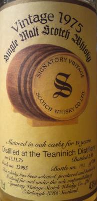 | Rodzaj whisky: | | bez dodatku karmelu, limited edition, single cask, dest. 12.XI.1975, but. II.1995, 280 butelek w serii |