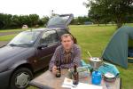 | | Szczęśliwy człowiek w pięknym miejscu, z cudownym piwem. Pole namiotowe w Wick, nasz namiocik, nasz samochód i Theakston Old Peculier. Że o przygotowywanym żarełku nawet nie wspomnę.