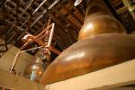 | |  | | Tutaj, z kolei, odbywało się napełnianie beczek gotowym destylatem. W destylarniach funkcjonujących do dnia dzisiejszego ten ogromny zbiornik na świeży destylat wykonany jest zwykle ze stali nierdzewnej. Taka drewniana kadź to unikat.