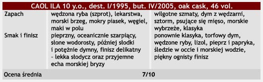 *** Uczestnicy VIII Spotkania Miłośników Malt Whisky w Jastrzębiej Górze zapoznali się już z opisaną wyżej wersją Caol Ila. Ciekawi jesteśmy zapamiętanych przez Was wrażeń – zapraszamy na forum dyskusyjne!